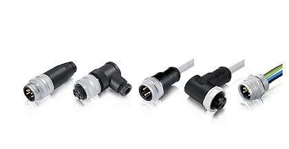 I connettori di potenza sono utilizzati per alimentare motori AC, azionamenti e interruttori motore con alte tensioni per lunghi periodi di tempo, ma anche per applicazioni a bassa tensione come componenti Ethernet fieldbus e dispositivi di rete. Si tratta principalmente di connettori circolari M12, M18 e 7/8 di pollice, che possono essere configurati dal cliente per adattarsi alla particolare applicazione. I connettori M12 con codifica K e S possono essere utilizzati fino a una tensione nominale di 630V AC.